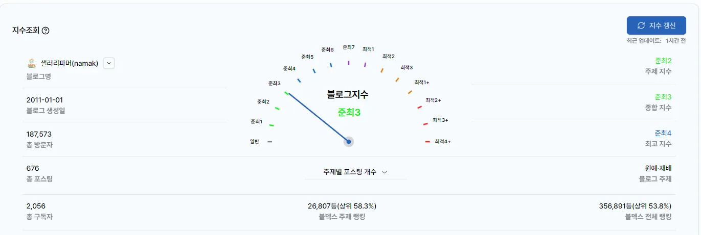 네이버에서는 공식적으로 블로그 지수는 없다고 합니다.